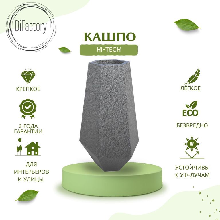 Вазон в стиле Хайтек отлично впишется в современный интерьер. Полигональная форма вазонов подчеркивает минимализм.